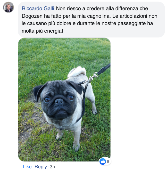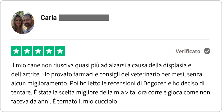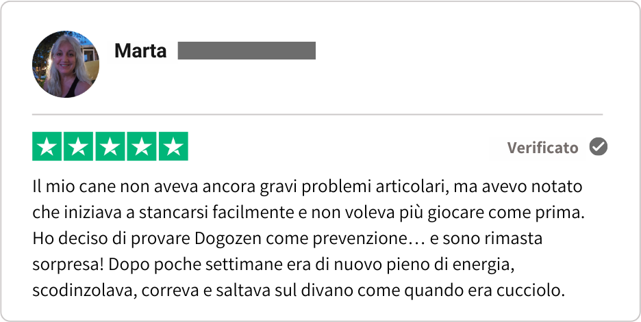 Costa solo pochi centesimi al giorno e, come dice Marta, una cliente di Dogozen: “Non puoi dare un prezzo alla vita felice del tuo cane” soprattutto dopo aver letto centinaia di recensioni e storie di successo.
